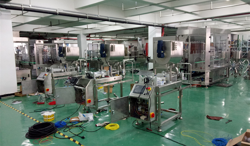 星火臥式雙頭辣椒醬灌裝機(jī)/雙頭攪拌醬料灌裝機(jī)裝配車間一角: