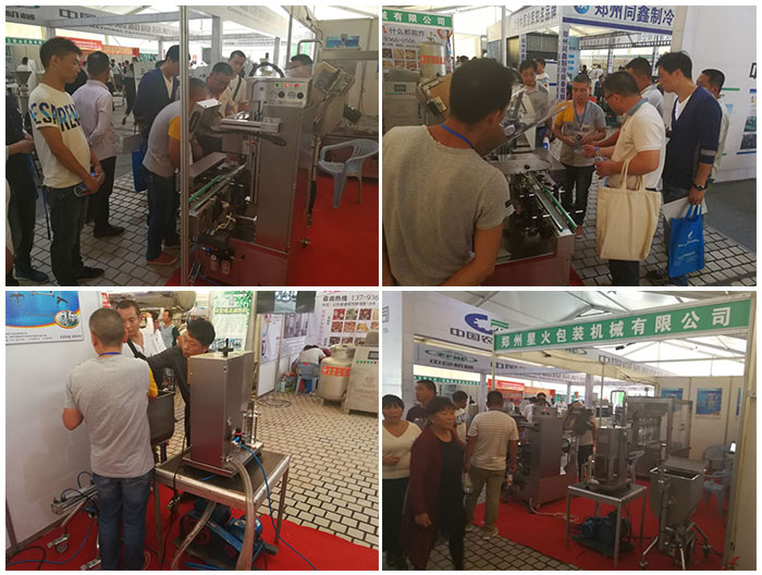客戶咨詢、為客戶進行設備操作演示、醬料灌裝機操作展示、客戶參觀星火展位