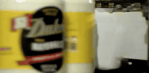 轉(zhuǎn)盤貼標(biāo)機(jī),機(jī)器貼商標(biāo)很好玩兒,商標(biāo)紙一側(cè)有膠水,貼住罐子以后,機(jī)器帶動罐子轉(zhuǎn)一圈兒,商標(biāo)紙就卷到罐子上了。